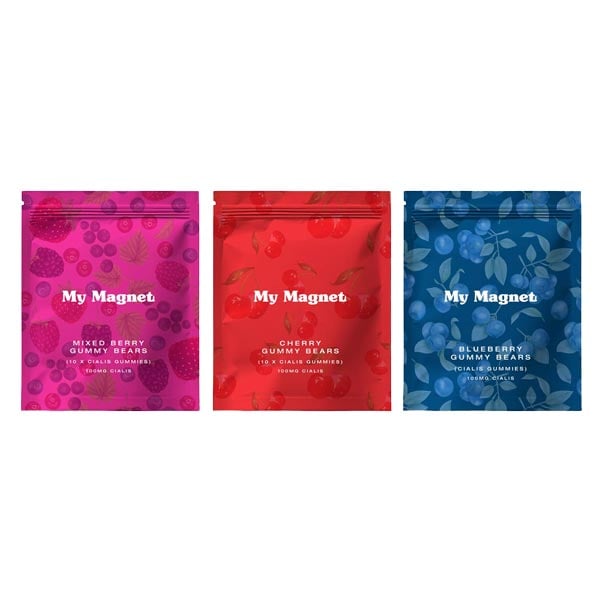 Take your experience to the next level with Tadalafil (Generic Cialis®) Gummies – 100MG Blueberry, Cherry, and Mixed Berry from My Magnet. These discreet and flavorful gummies provide the benefits of Cialis in a convenient, chewable form. Each gummy contains 100MG of tadalafil, delivering long-lasting support for enhanced blood flow, stamina, and performance. With a delicious Blueberry, Cherry, and Mixed Berry flavor, these gummies offer a hassle-free way to boost confidence without the need for pills.