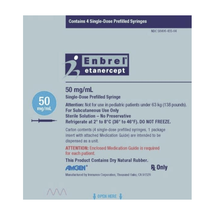 Enbrel® (etanercept) is a tumor necrosis factor (TNF) inhibitor. It is used for adults with rheumatoid arthritis, psoriatic arthritis, ankylosing spondylitis, and plaque psoriasis. It is also used for polyarticular juvenile idiopathic arthritis in children. The Enbrel Pre-Filled Syringe delivers a subcutaneous injection, most often once weekly. Many people search for Enbrel Pre-Filled Syringe without insurance; CanadianInsulin offers value-focused options.