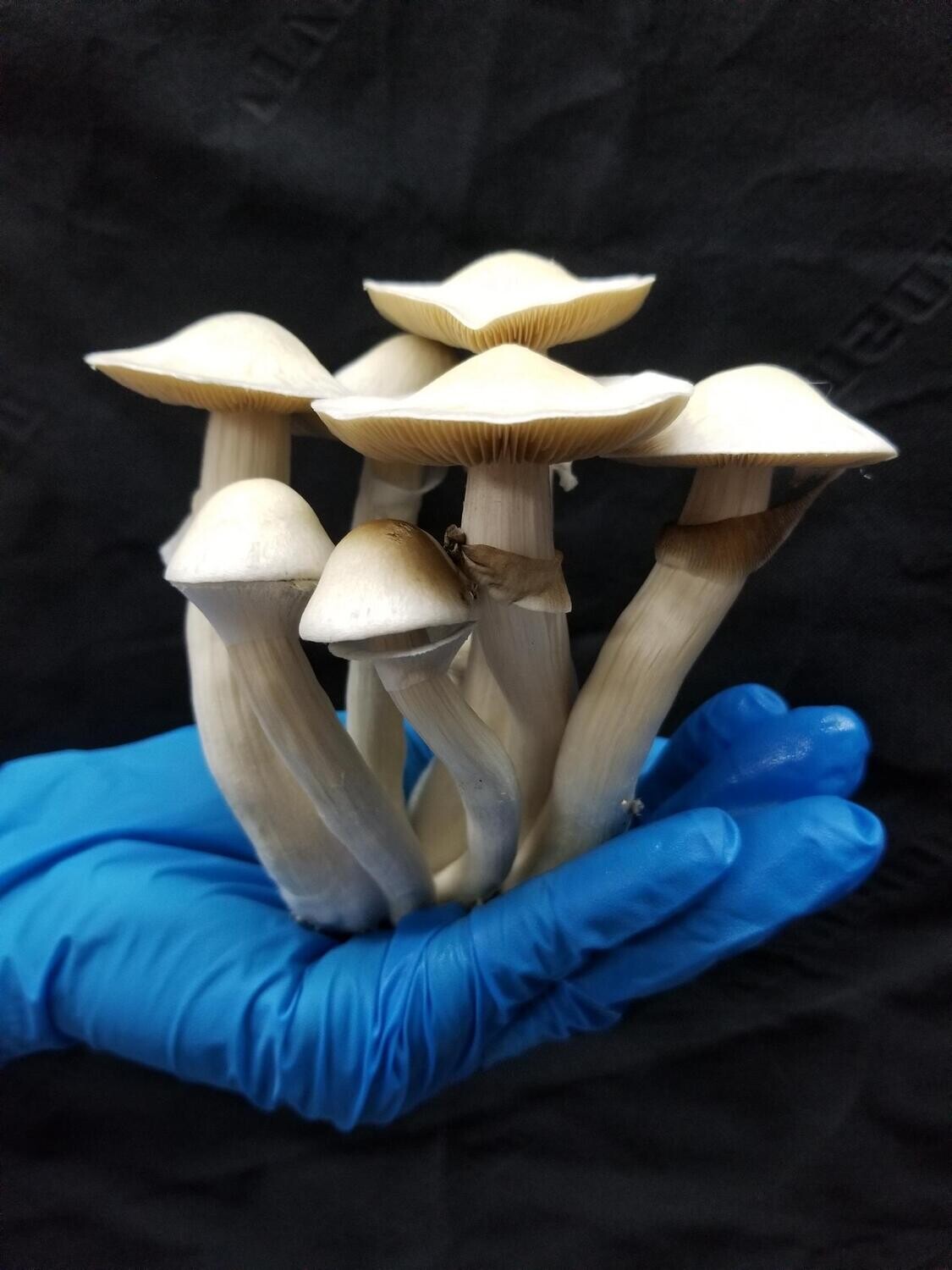 White Rabbit combines some of the most desired qualities of each of its pedigree parents, such as increased potency, beautiful pale coloring, and above average yields (for a strain with Pe genetics). This strain first appeared in Holland, and was bred by a group of growers who specialize in developing new varieties of magic mushrooms.